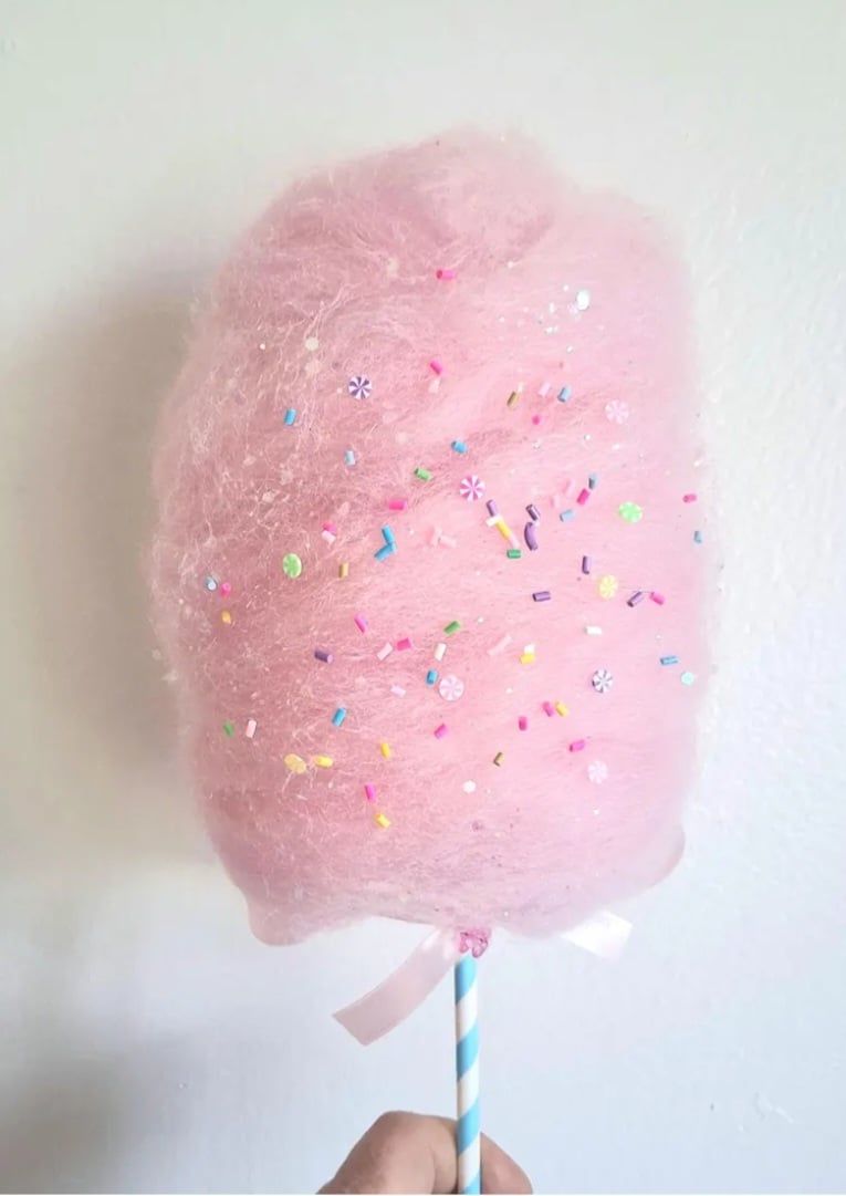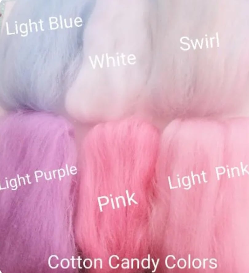 MATERIALS: Wool roven yarn for the artificial Cotton Candy.