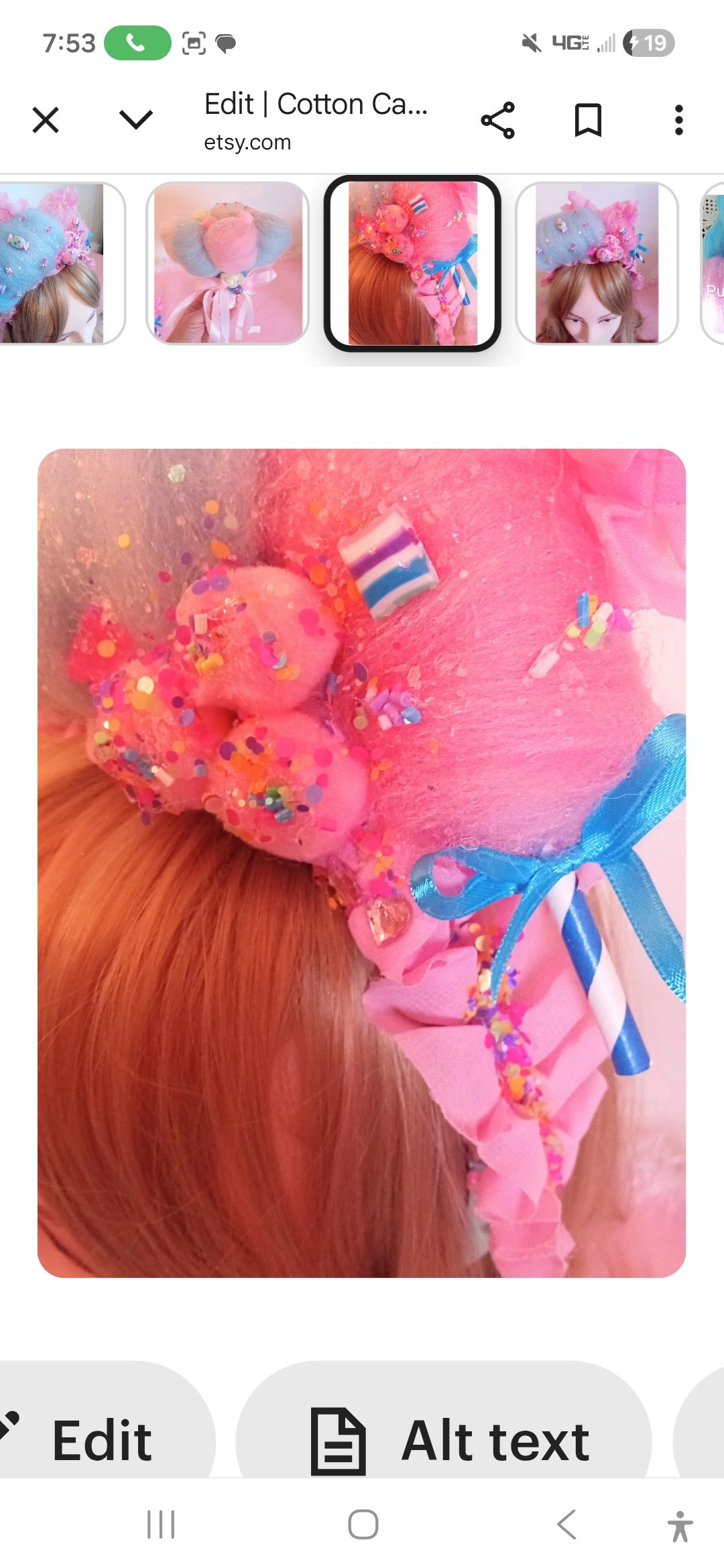 Faux Cotton Candy Headband done in light blue and pink, made to fit BOTH Kids and Adults.