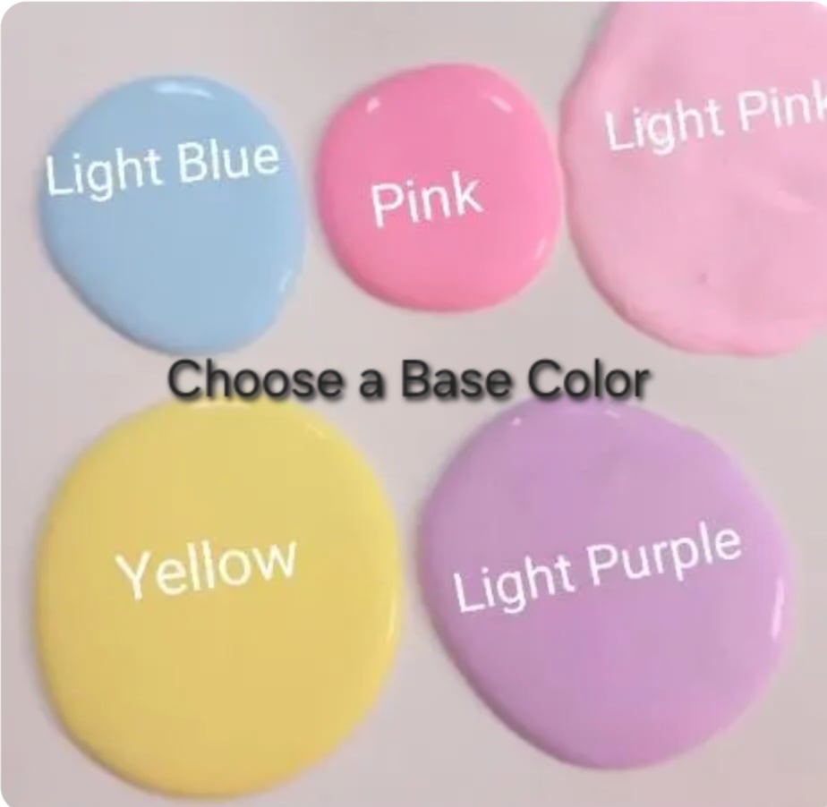 The base is embellished with assorted candies which will vary, and sprinkled with glitter. Glitter is used on the Cotton candy as well.