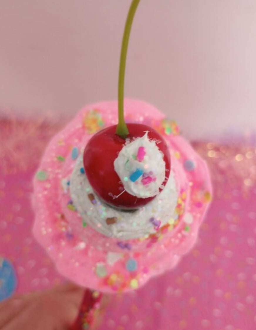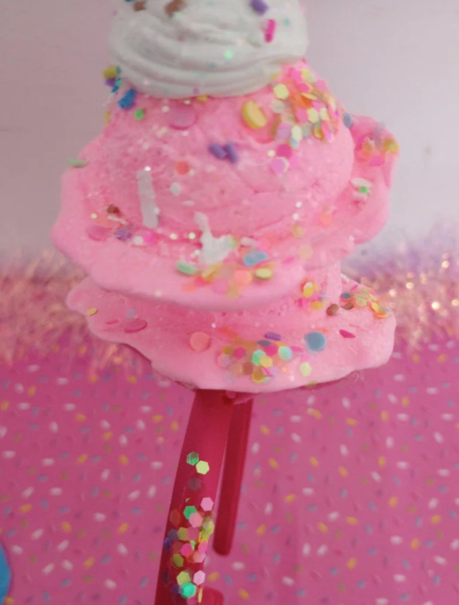 Done with 2 pink ice cream scoops made with foam clay so it's very lightweight.