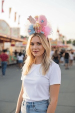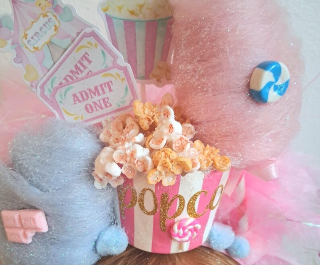 Gorgeous Popcorn/Cotton Candy themed Headpiece in mostly pink and blues.