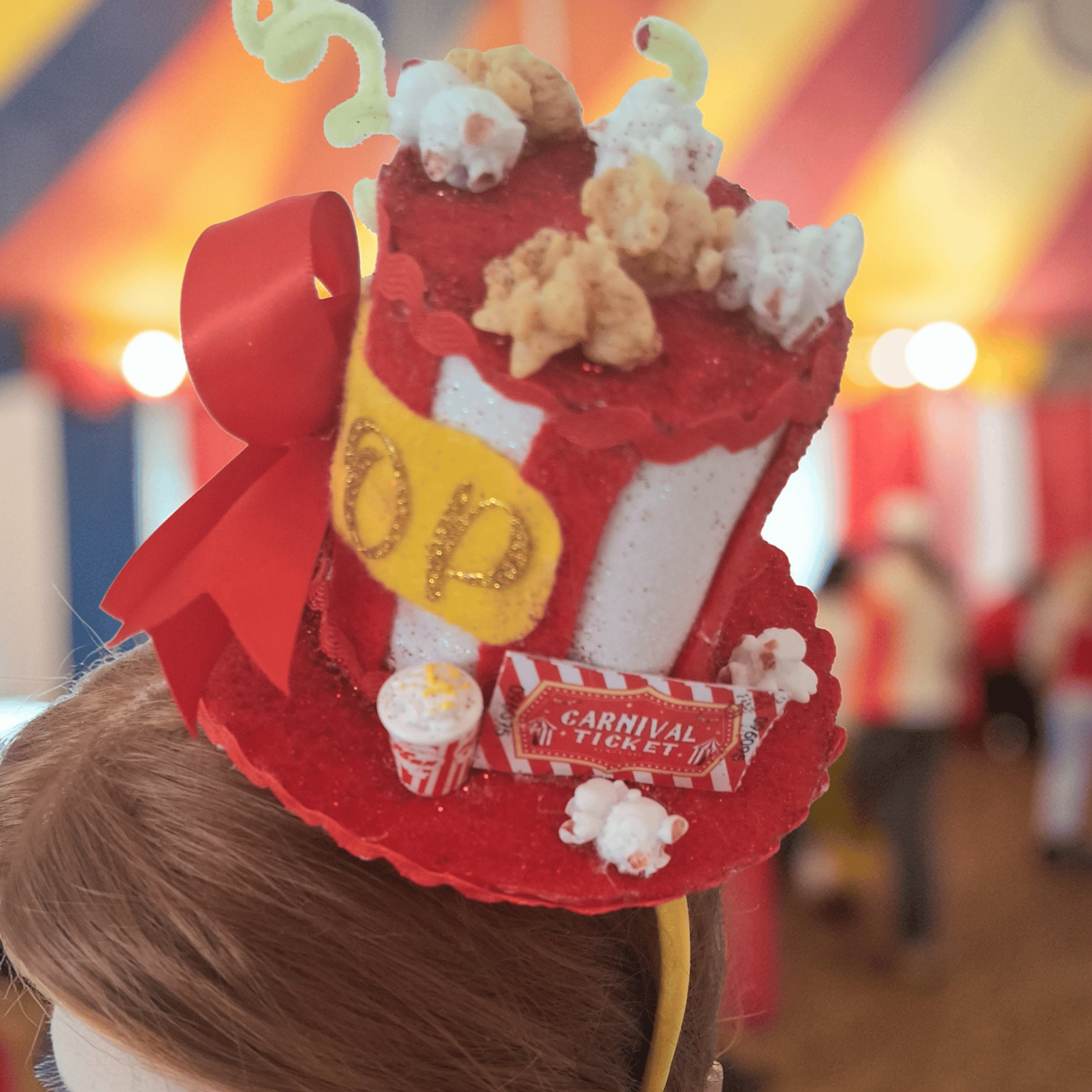 This Unique and Fun Tophat is attached to a skinny yellow headband.